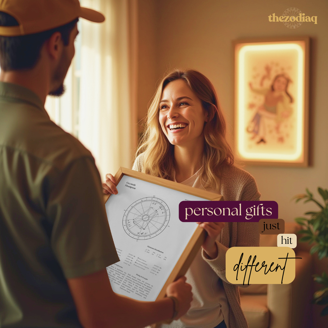 Meet our personalized digital natal chart artwork, a thoughtful and meaningful gift for loved ones, newborns, birthdays, or yourself. This unique design reflects the astrological aspects of the moment you were born.